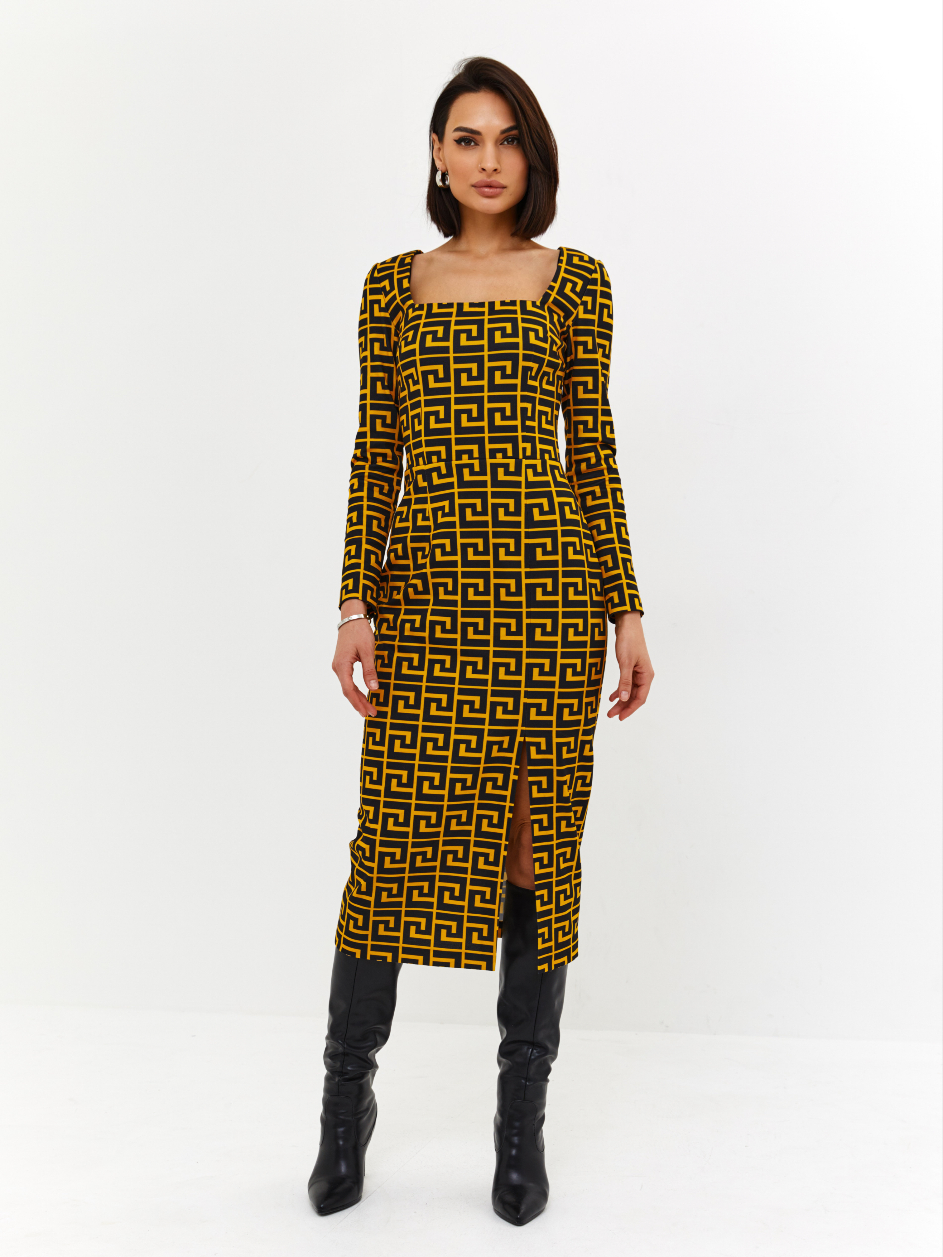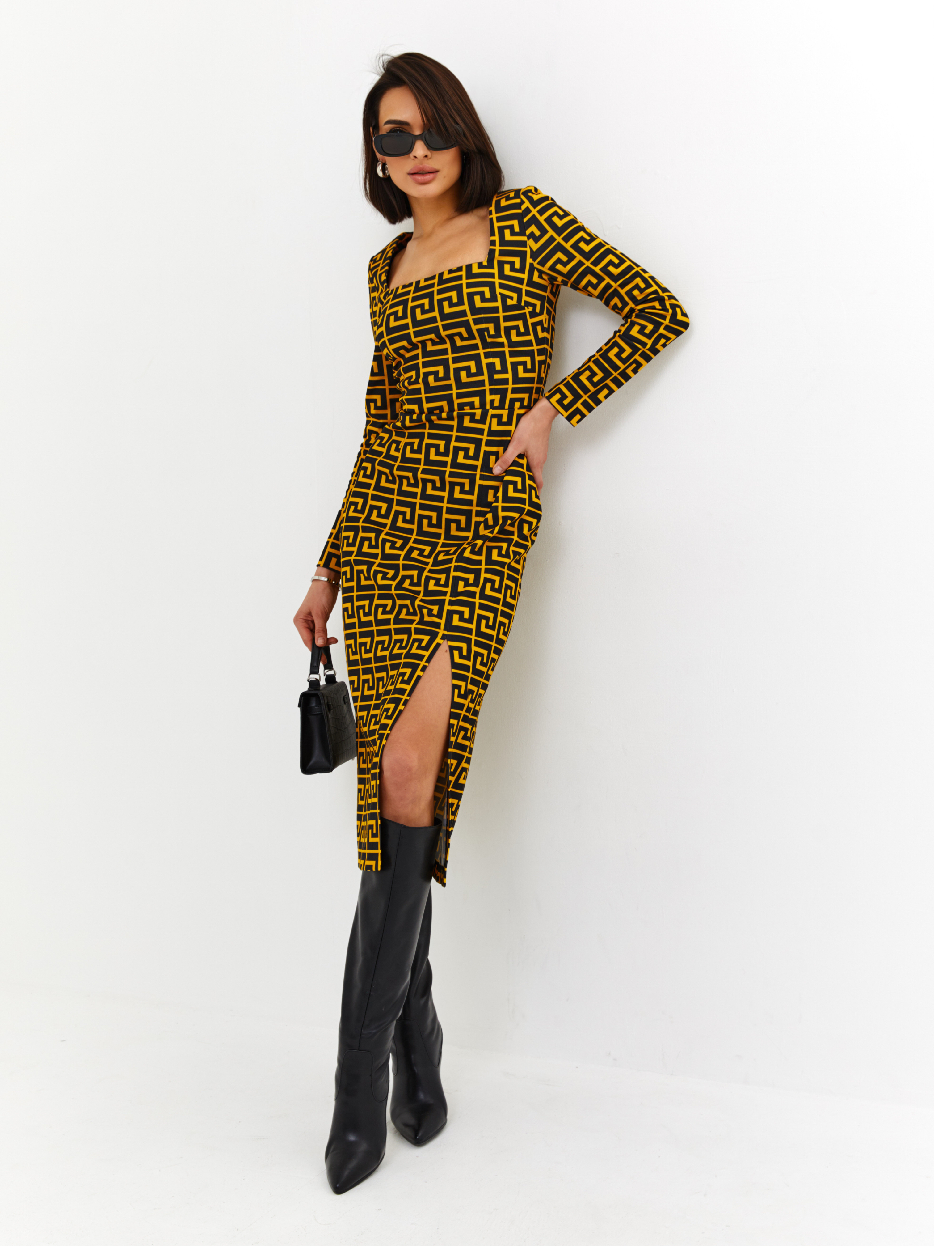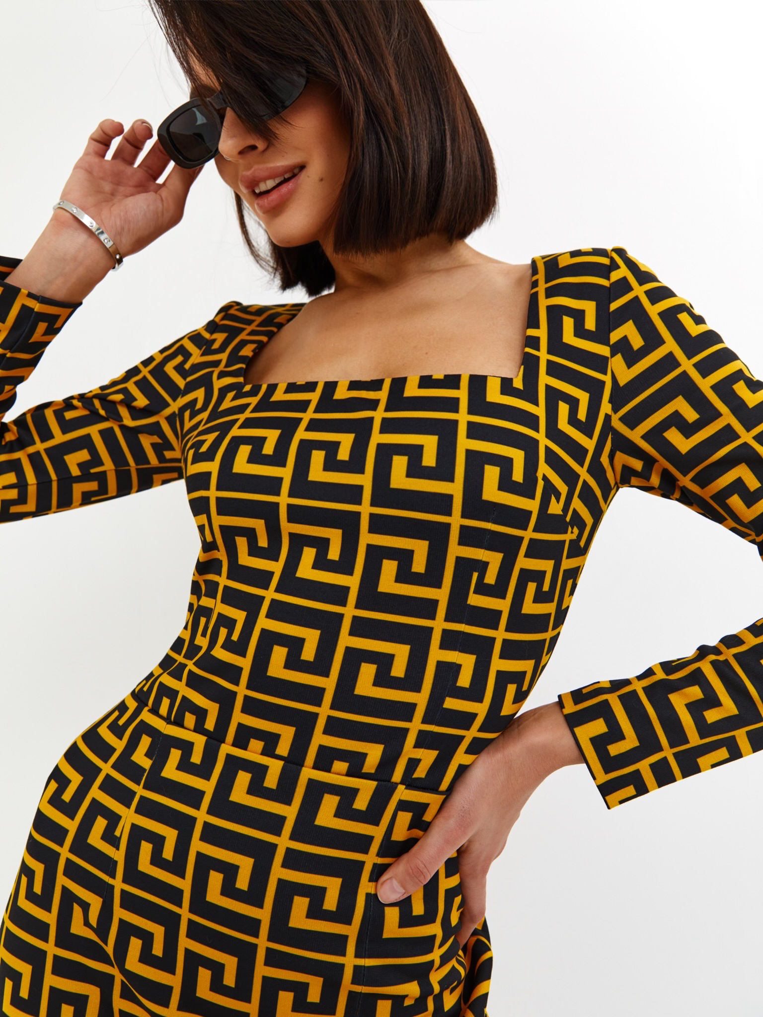 - Платье выполнено из премиального итальянского джерси с высоким стрейчем, фактурным рисунком ткани и нашим культовым принтом