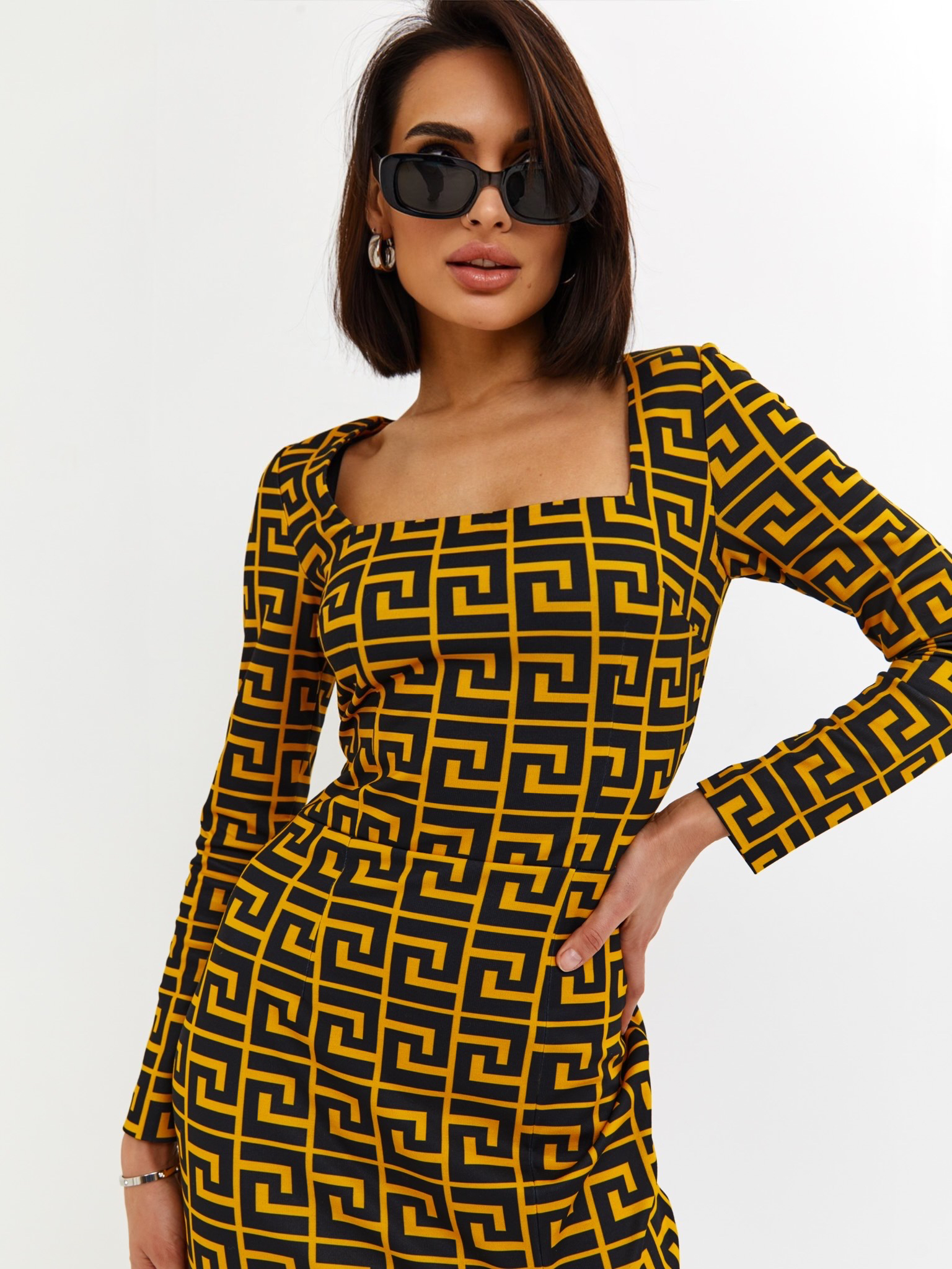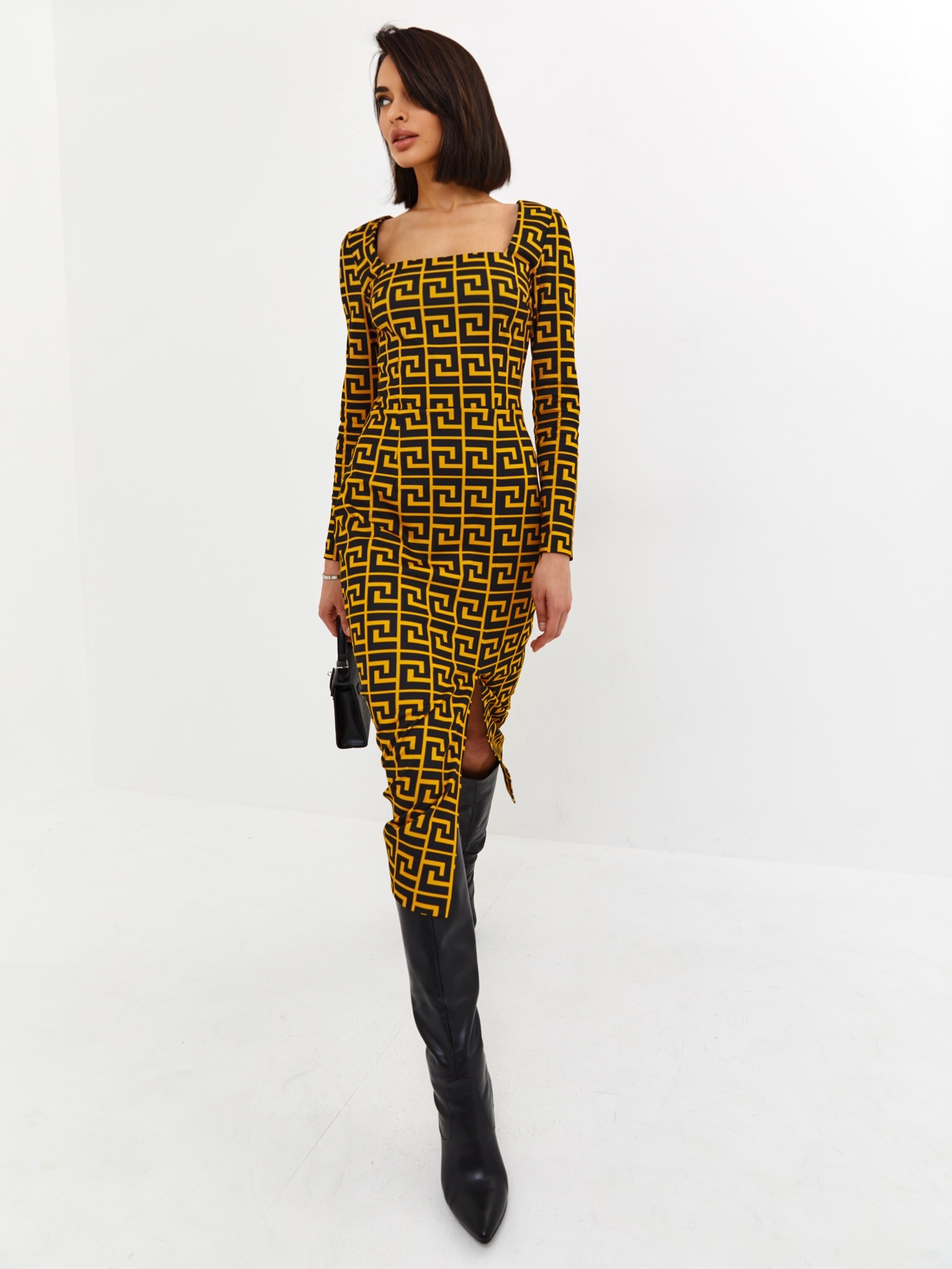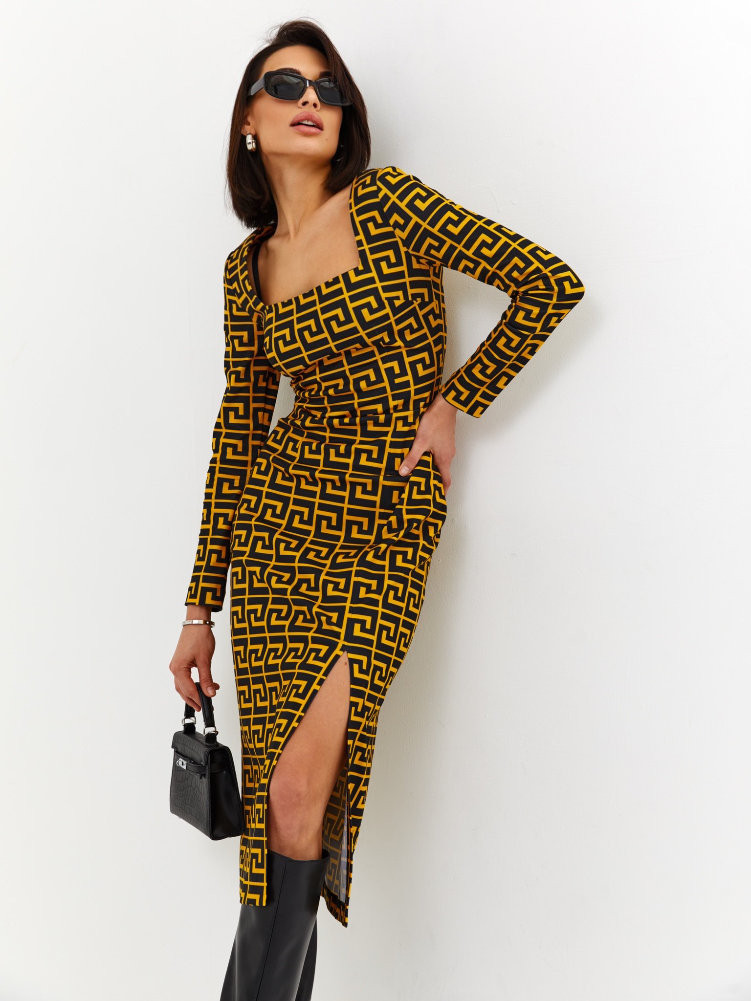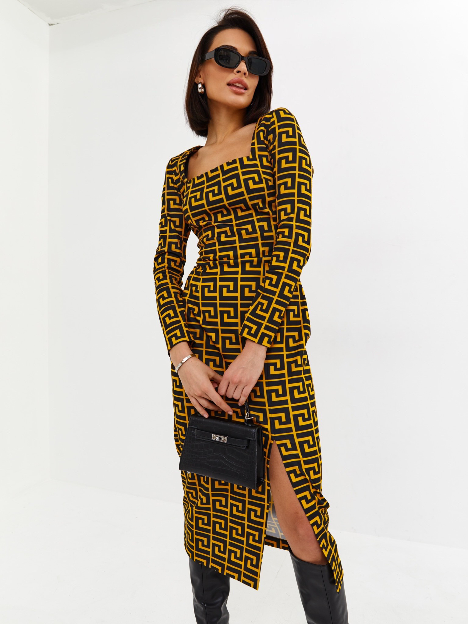 - Платье выполнено из премиального итальянского джерси с высоким стрейчем, фактурным рисунком ткани и нашим культовым принтом